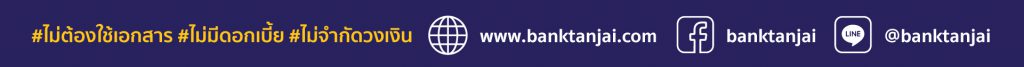 หากคุณต้องการสินเชื่อ เงินด่วน และสนใจบริการรับรูดบัตรเครดิตเป็นเงินสดหรือเปลี่ยนวงเงิน บัตรเครดิตเป็นเงินสดกับเรา คุณสามารถสอบถาม ข้อมูลเพิ่มเติมเกี่ยวกับบริการรับรูดบัตรได้ทาง Line ของเรา ID: @banktanjai